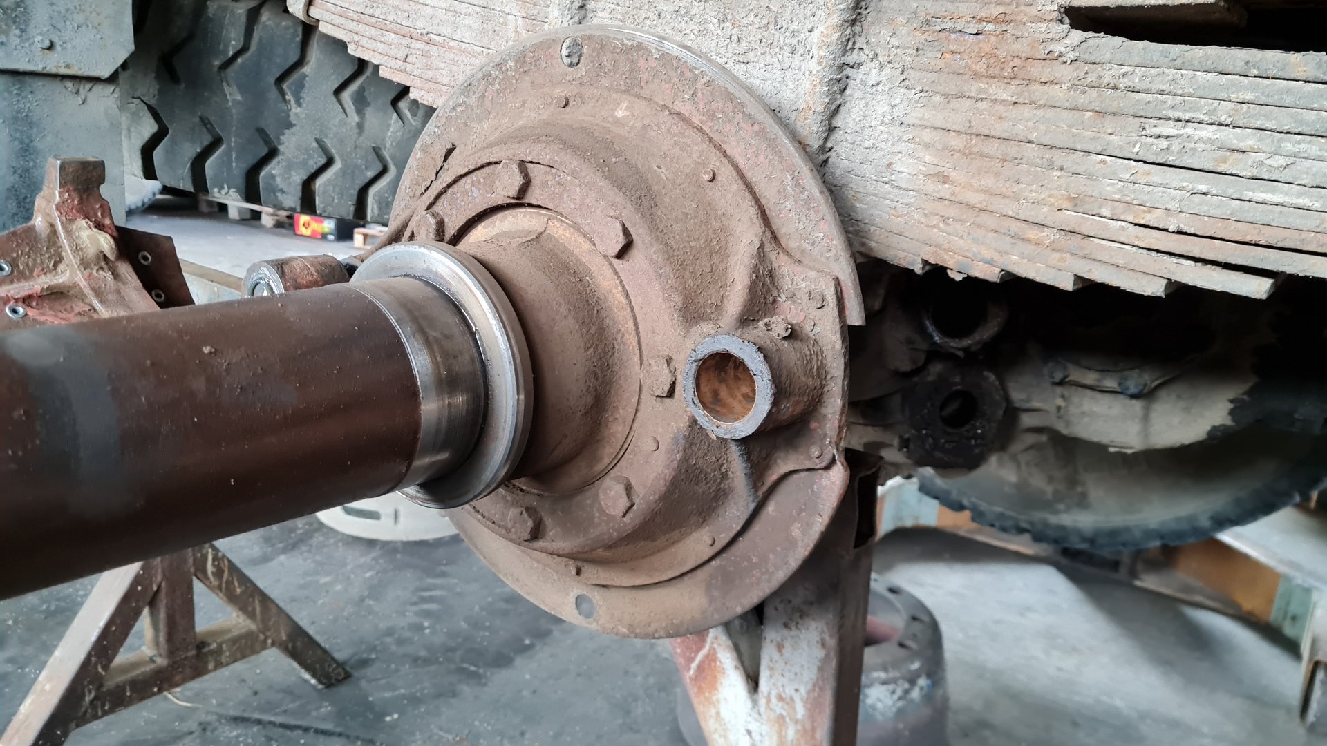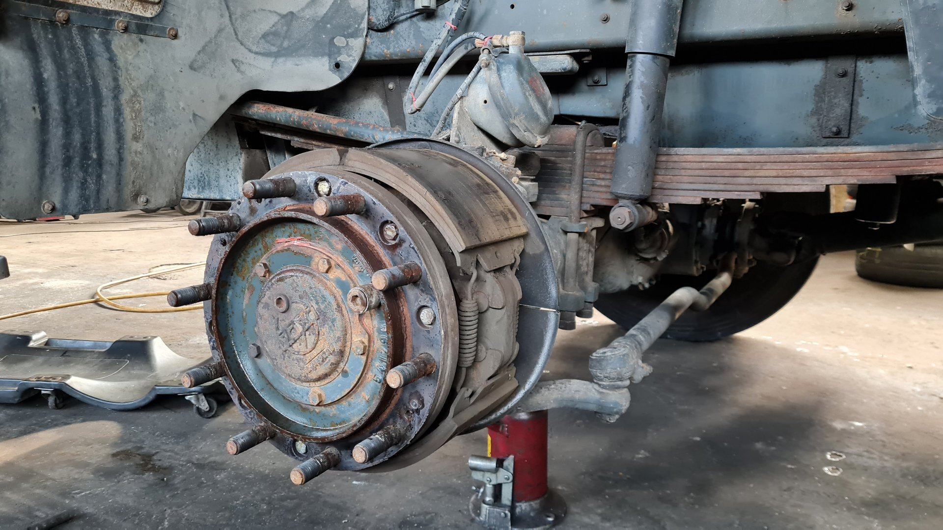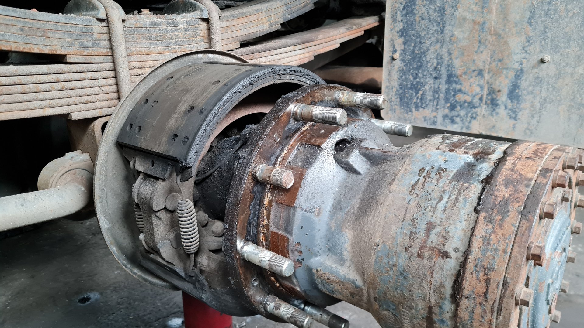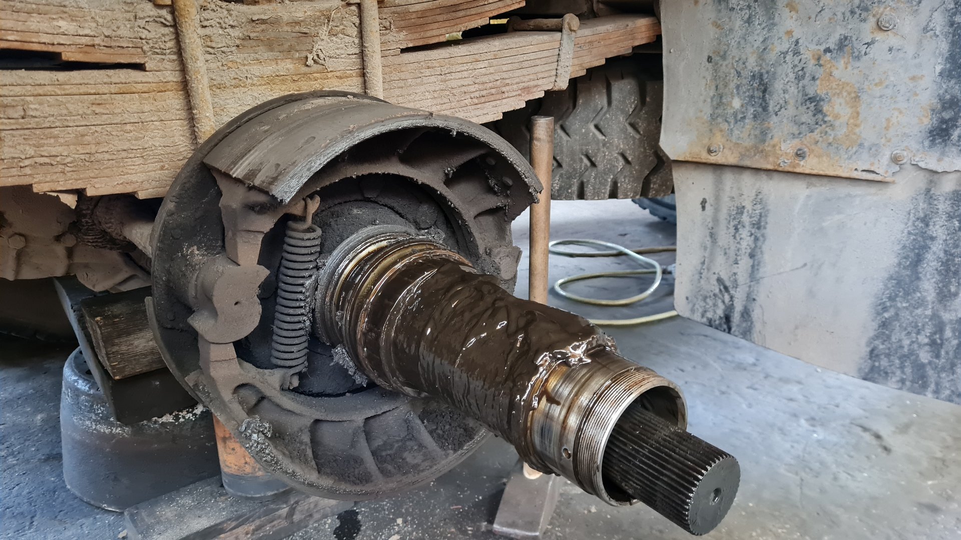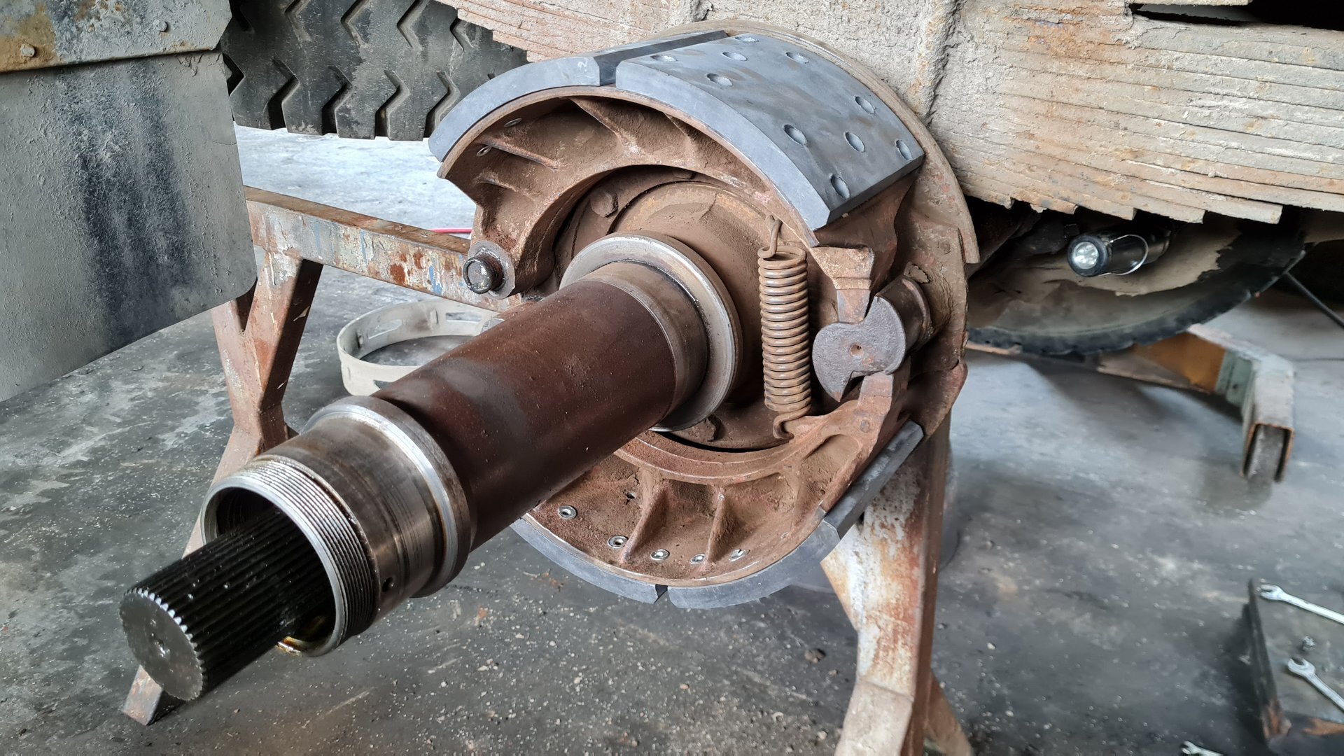 Oprava LIAZ 18.29, vyčistenie a nastavenie brzd, pretesnenie zadneho náboja, výmena hydraulickeho valca.