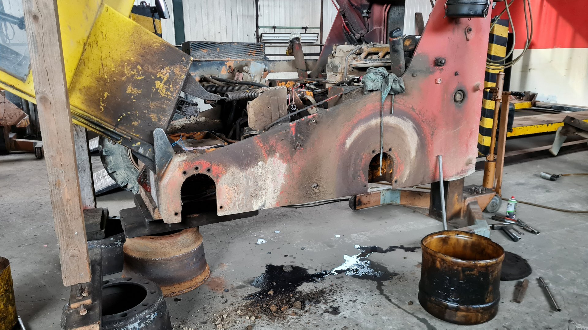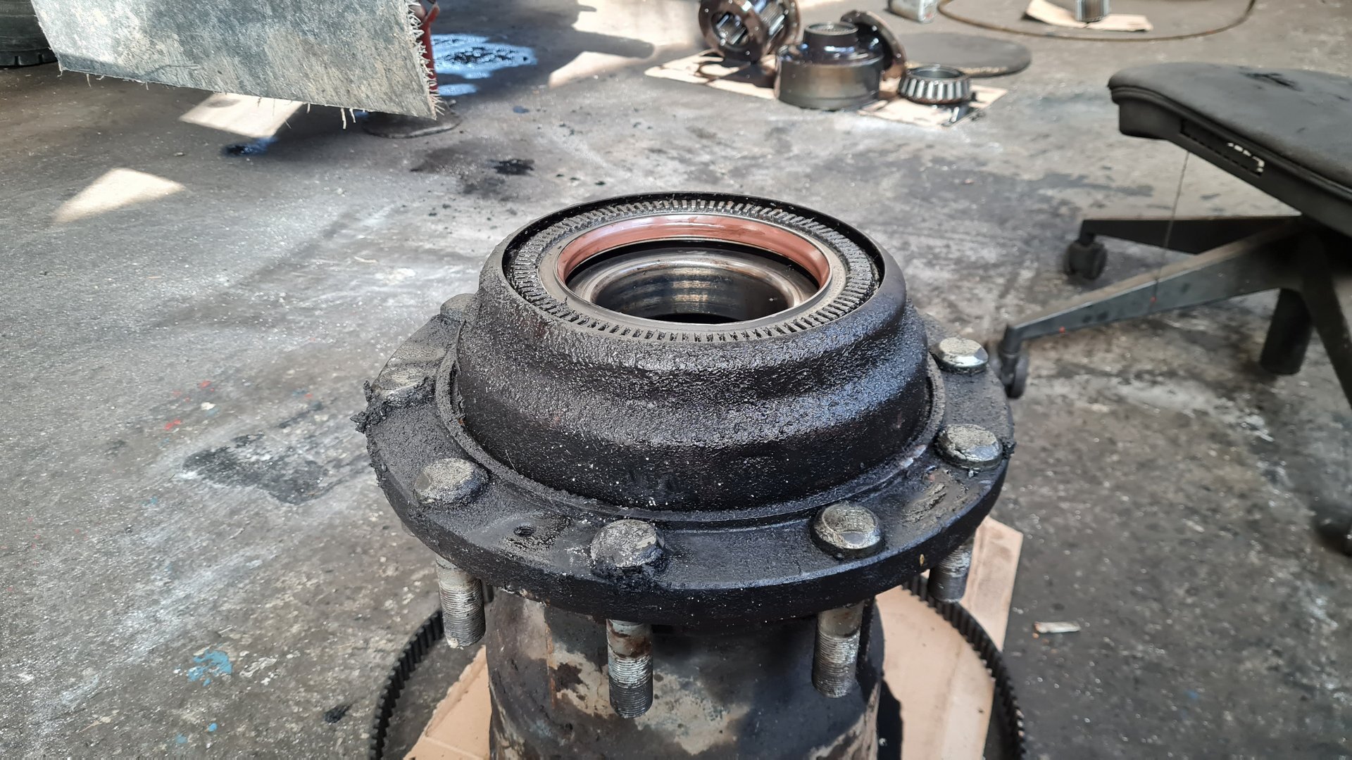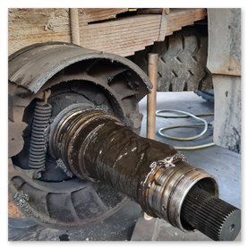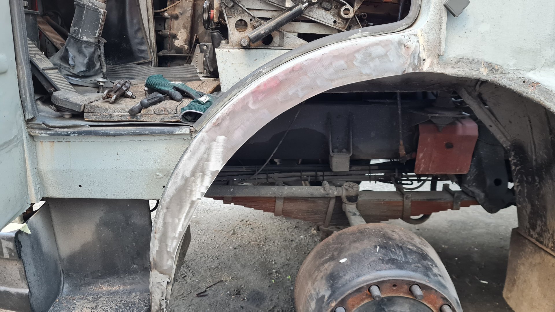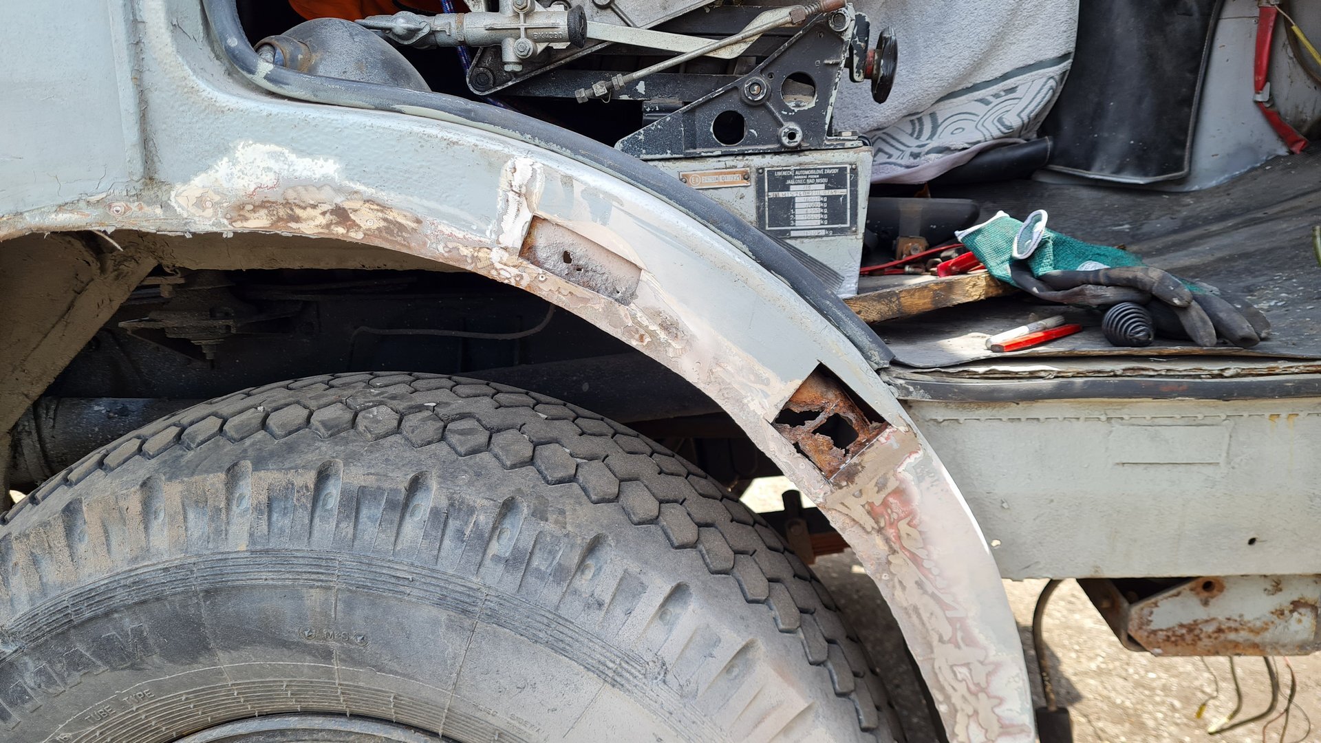 Oprava LIAZ 18.29, vyčistenie a nastavenie brzd, pretesnenie zadneho náboja, výmena hydraulickeho valca.