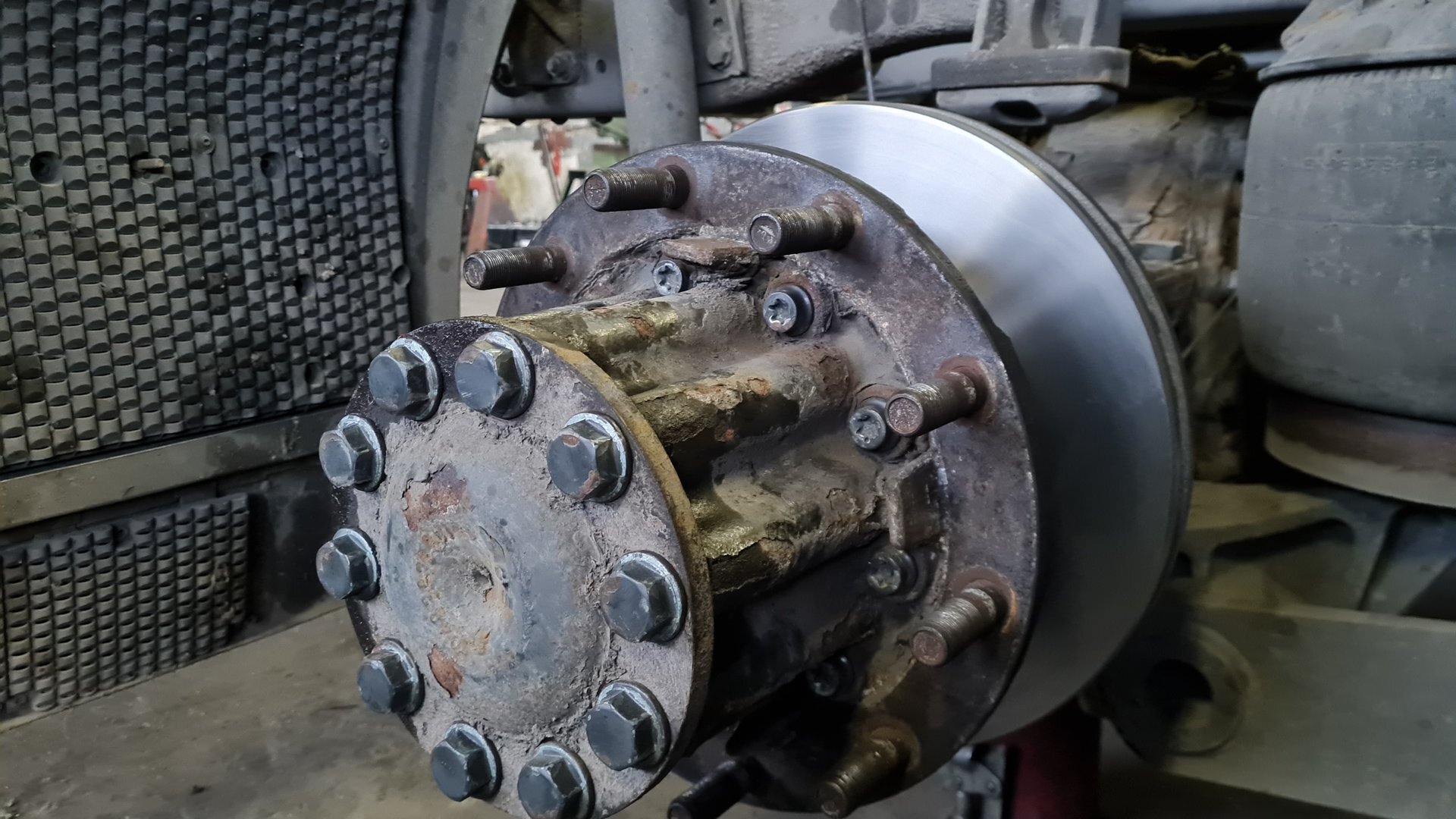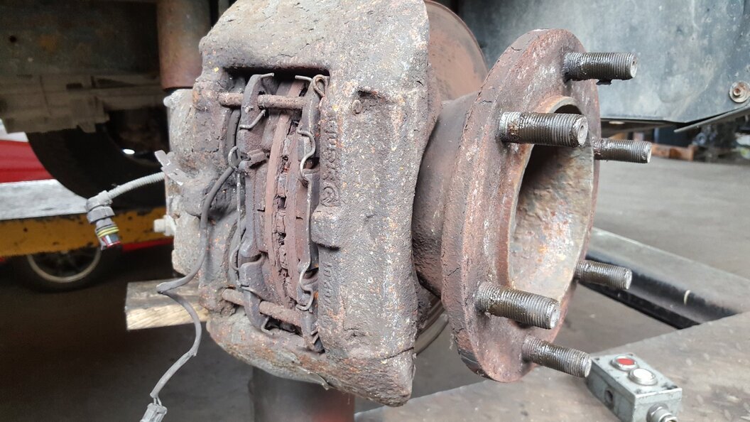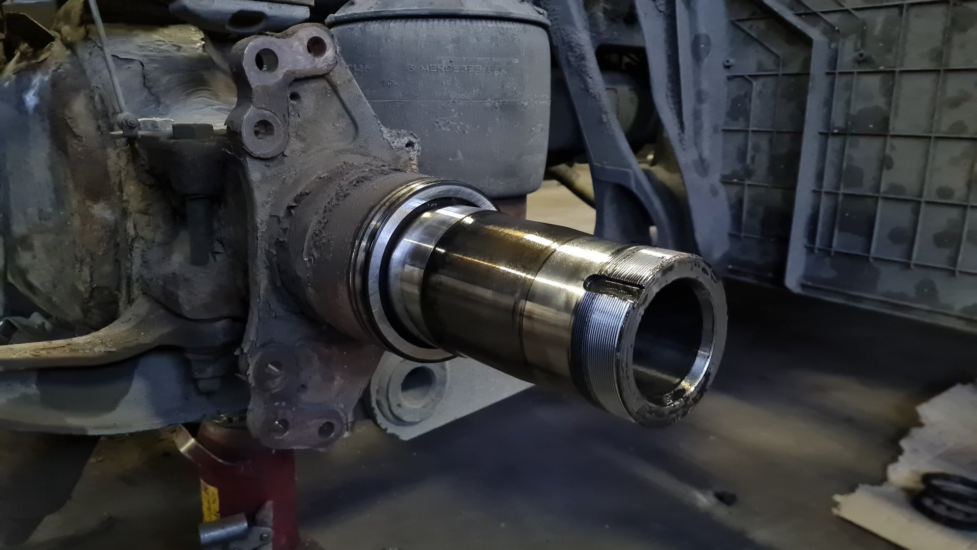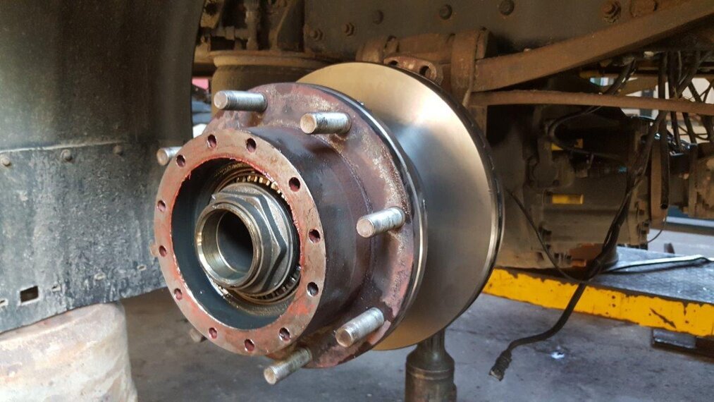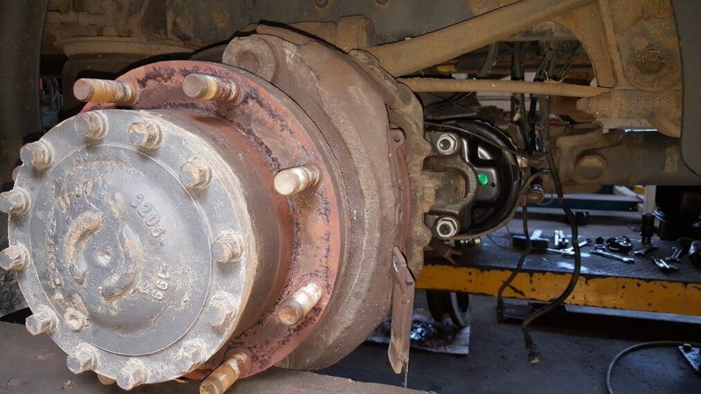 Mercedes Actros: výmena zadných brzdových kotúčov, platničiek, oprava zadretých strmeňov
