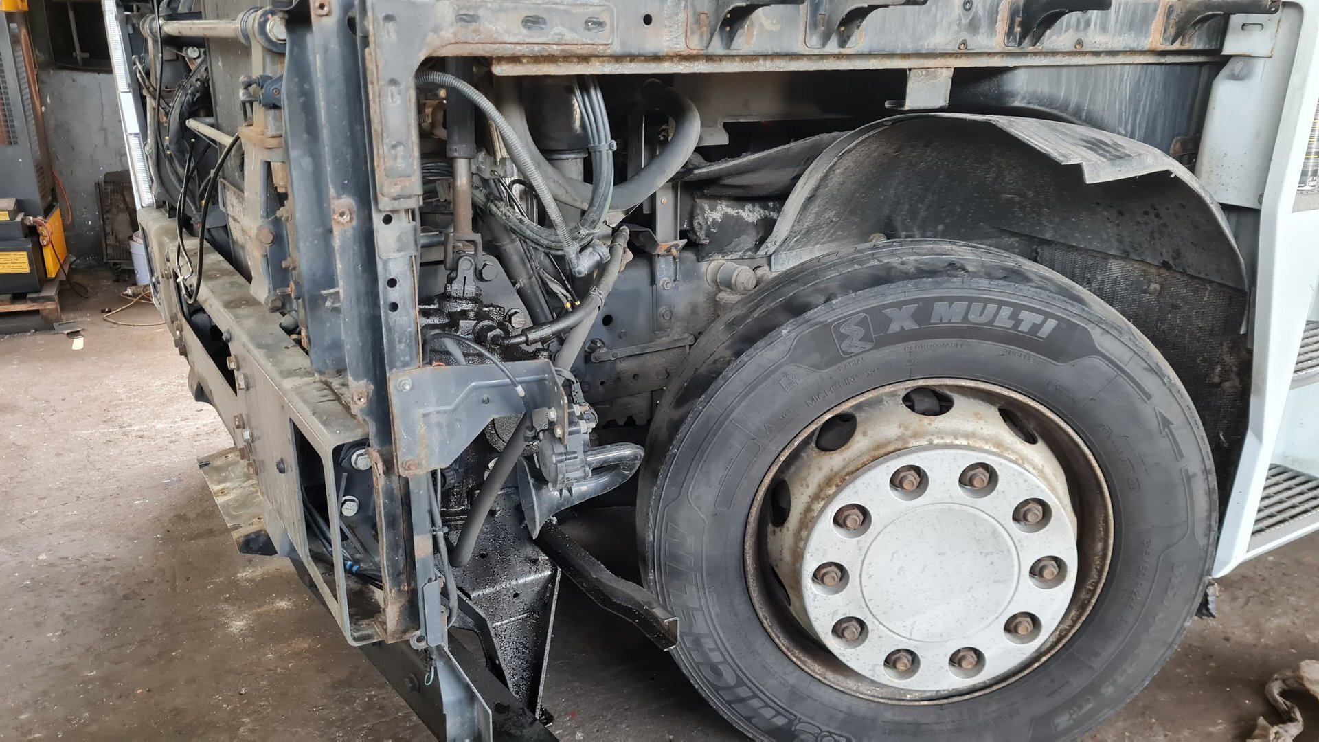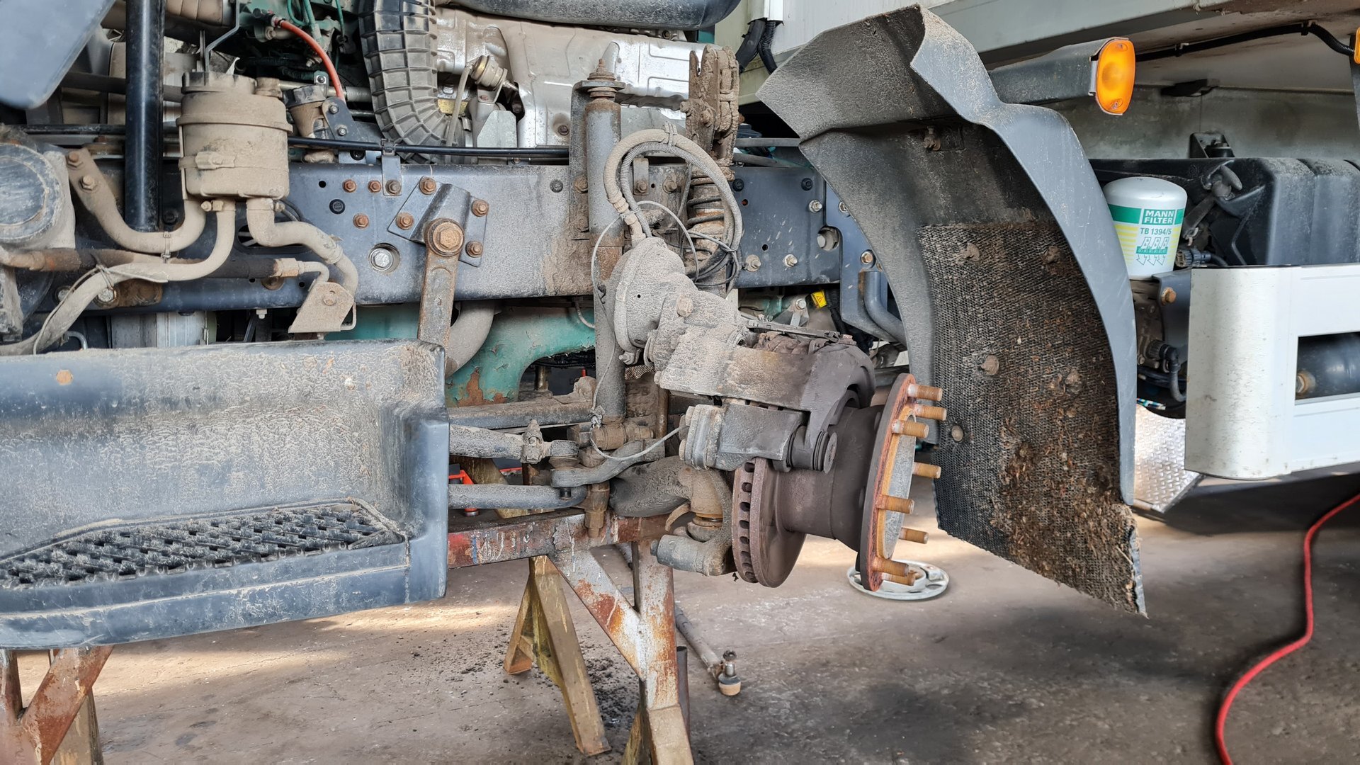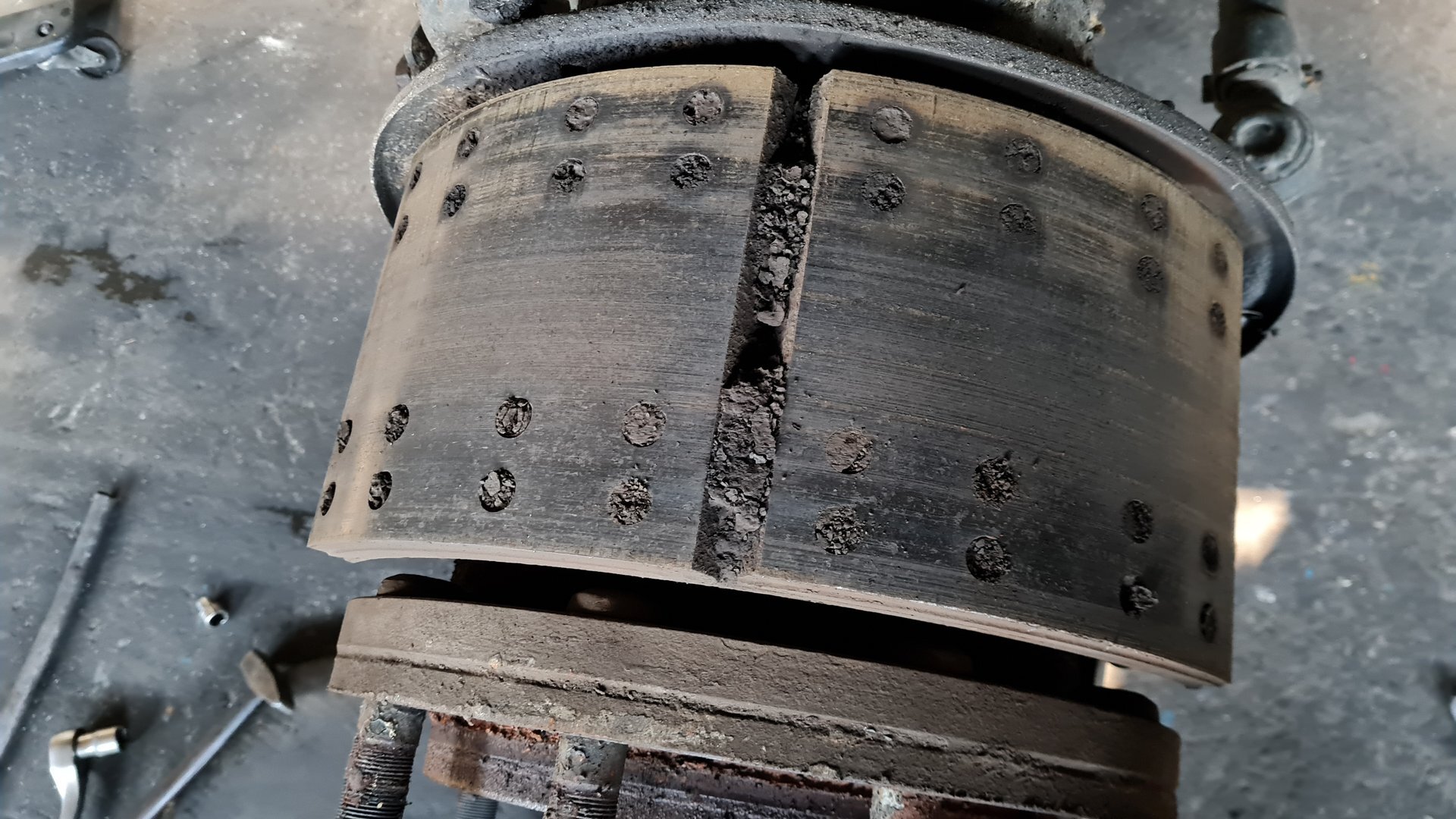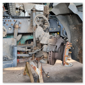Mercedes Actros: výmena zadných brzdových kotúčov, platničiek, oprava zadretých strmeňov